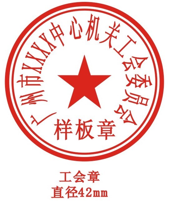 三、中華全國總工會的印章,直徑5公分,邊寬0.15公分,五角星直徑2公分。各省、自治區(qū)、直轄市總工會及全國產業(yè)工會、全總部委辦一級組織的印章,直徑4.6公分,邊寬0.12公分,五角星直徑1.8公分。其他各級工會組織,及工會組織所屬的部門、企事業(yè)單位的印章,直徑均為4.2公分,邊寬0.12公分,五角星直徑1.6公分。