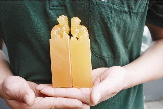 楚天金報(bào)訊(記者海冰)小小一對(duì) 印章石(如圖),叫價(jià)竟高達(dá)120萬(wàn)元。近日,記者在武漢舉辦的觀賞石·寶玉石國(guó)際文化節(jié)上了解到,這對(duì)印章之所以如此“天價(jià)”,因其材質(zhì)是受業(yè)界追捧的新石種金凍石,而且為了追求極致,重不過(guò)638克的印章,竟耗費(fèi)了5噸金凍石原石石料。