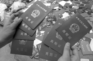據(jù)警方統(tǒng)計(jì),在此次繳獲的假證章中,戶口本、結(jié)婚證、離婚證、產(chǎn)權(quán)證、學(xué)生證、畢業(yè)證這6類證件數(shù)量最多,其中離婚證、畢業(yè)證制假數(shù)量居前兩位。民警鐘亞杰介紹,根據(jù)以往辦案經(jīng)驗(yàn),假畢業(yè)證需求量一直較大,而假離婚證在近一兩年呈暴漲趨勢(shì)。
