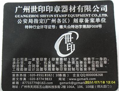 不褪色印章主要是蓋在金屬、玻璃、塑料、玻璃紙、木板,衣服上-水洗后都不褪色,保修3個月。(顏色選擇:黑、白 、紫、紅、藍、綠、橙),價格:100元。 |