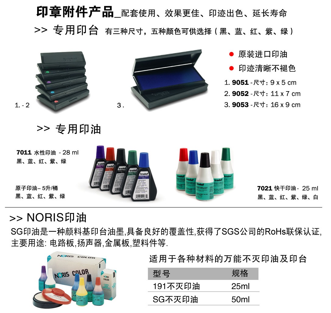 不退色印油,產(chǎn)品編號為No.191的這種現(xiàn)代型印臺油墨,幾乎適應(yīng)于任何非多孔滲水的表面。這種現(xiàn)代型印臺油墨在這些材料上使用時,干燥速度很快,但是在幾個星期之內(nèi),仍將保持潮濕和未固化狀態(tài)。 不適應(yīng)于PE/PP 它是第一種快干油墨,用于嵌有毛布料的自動印碼機。